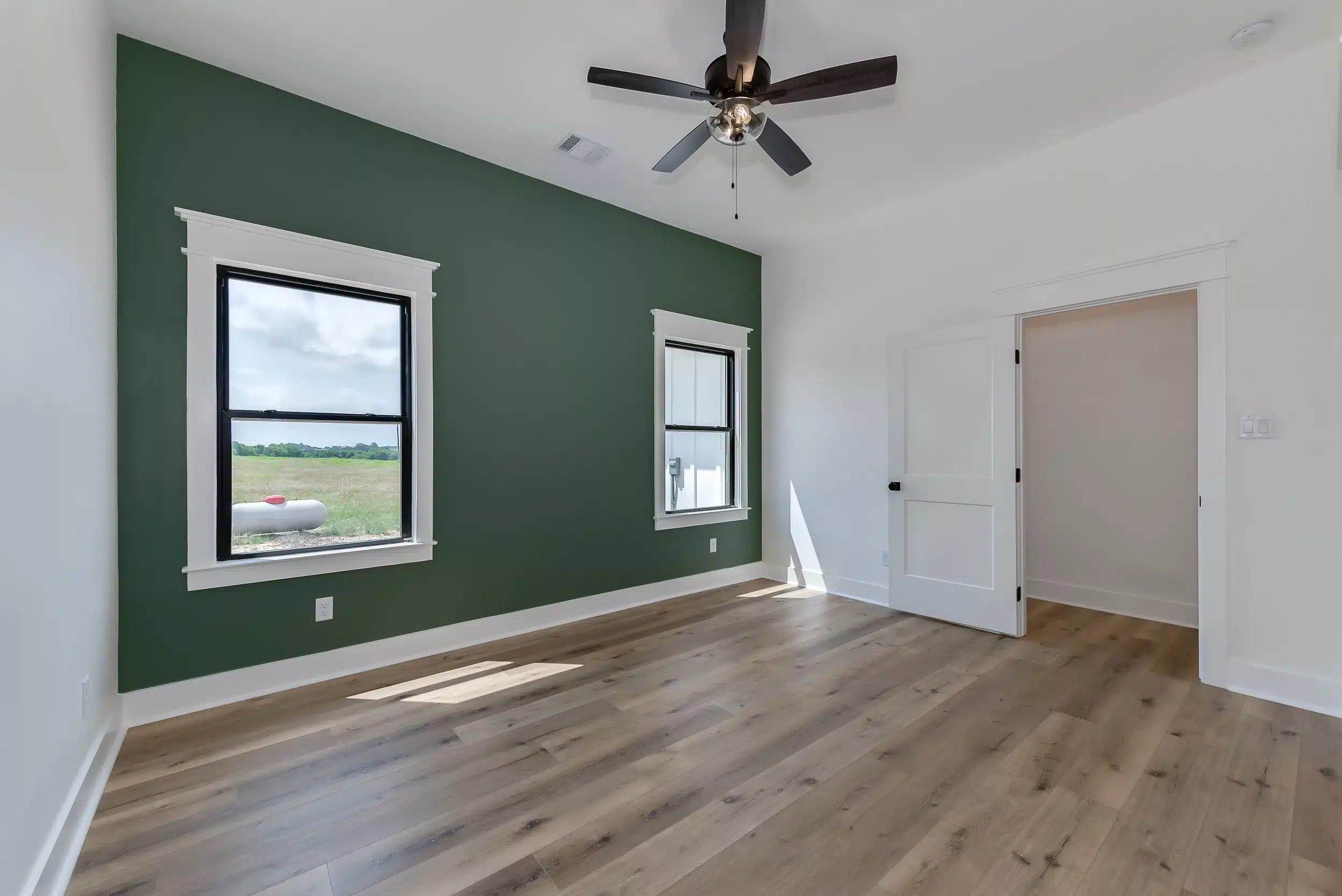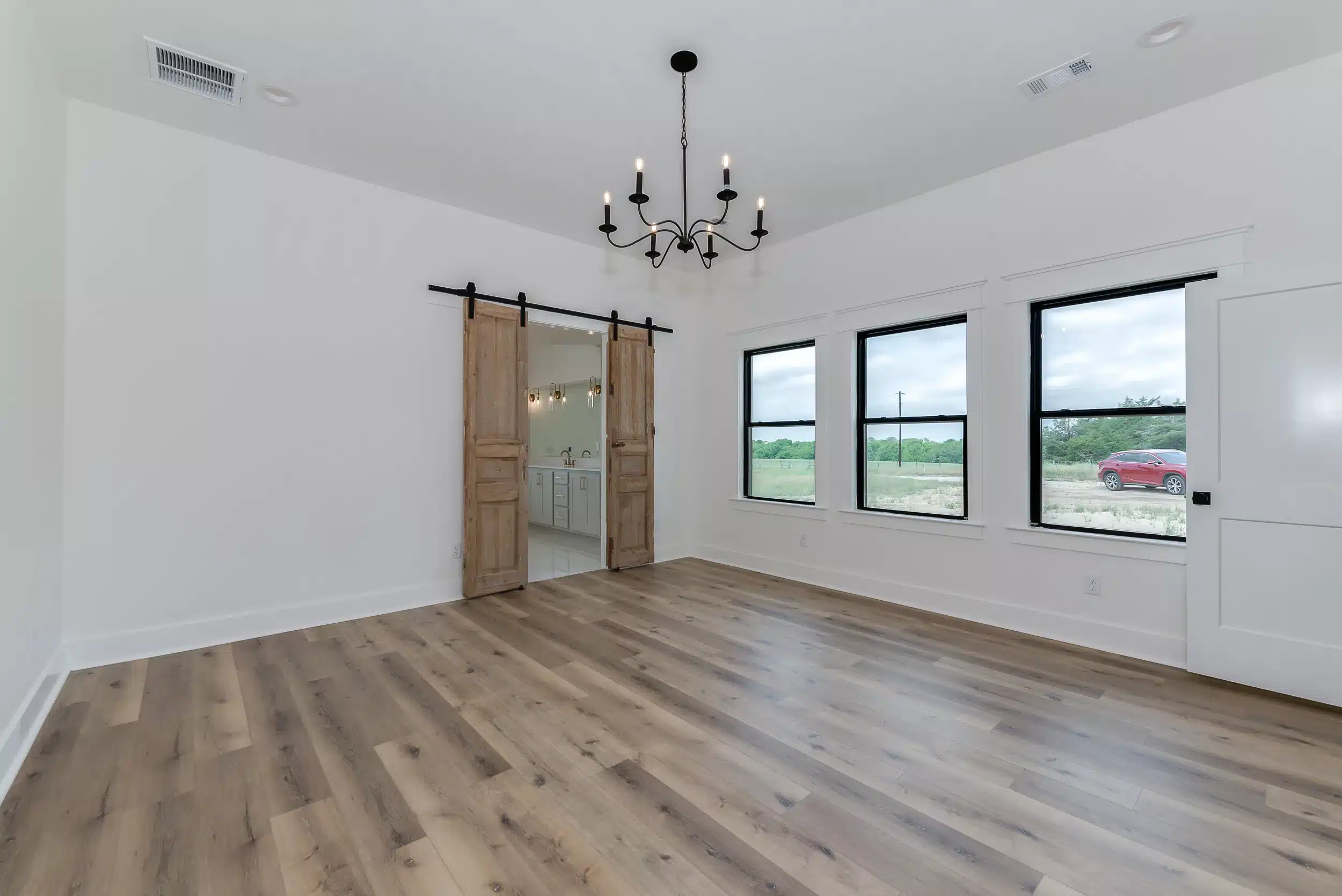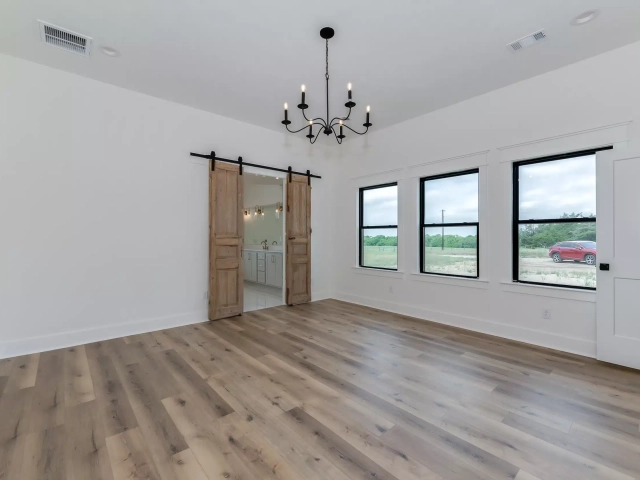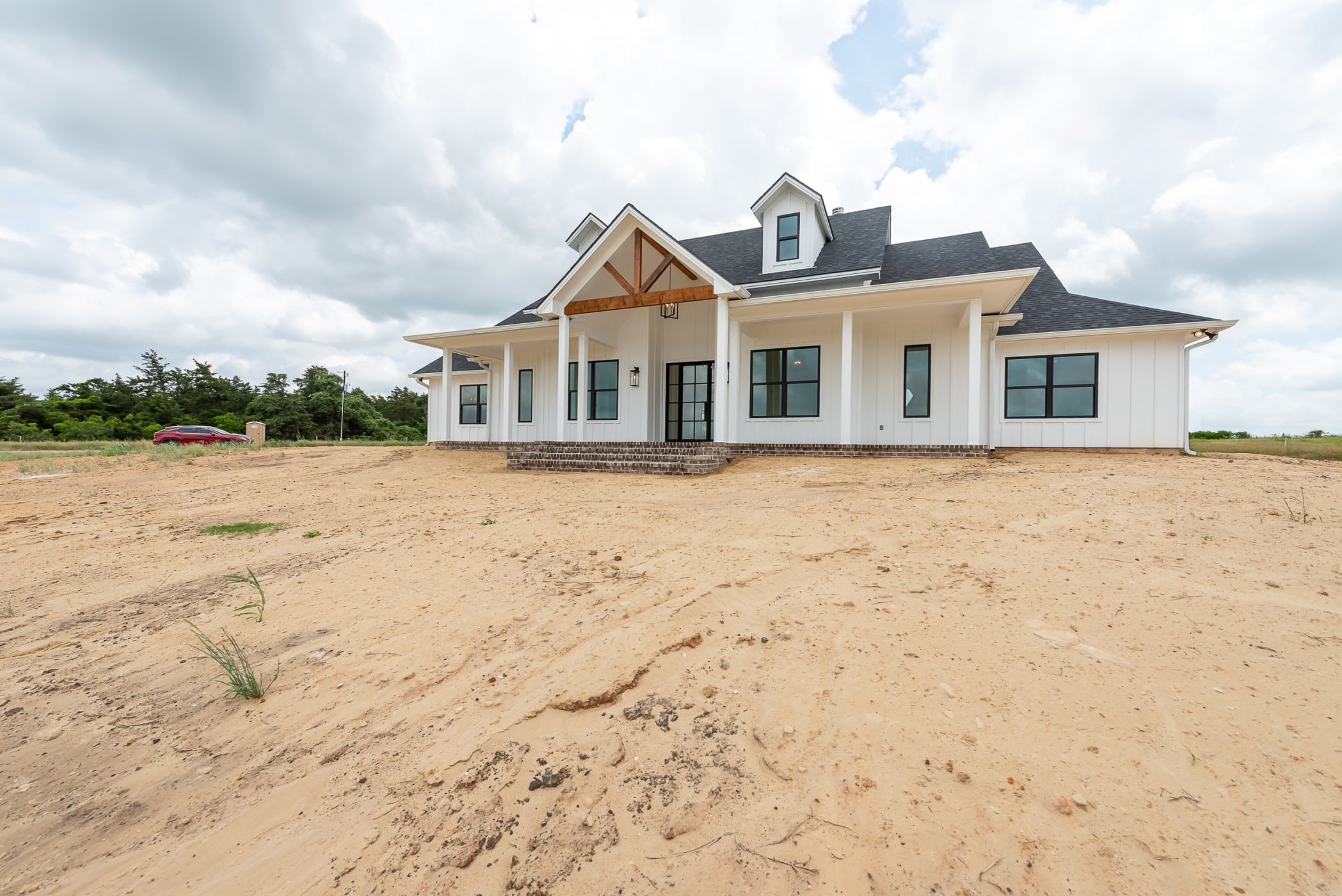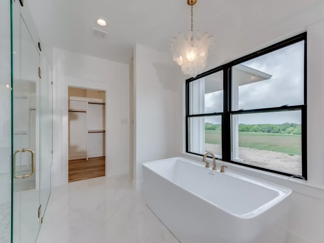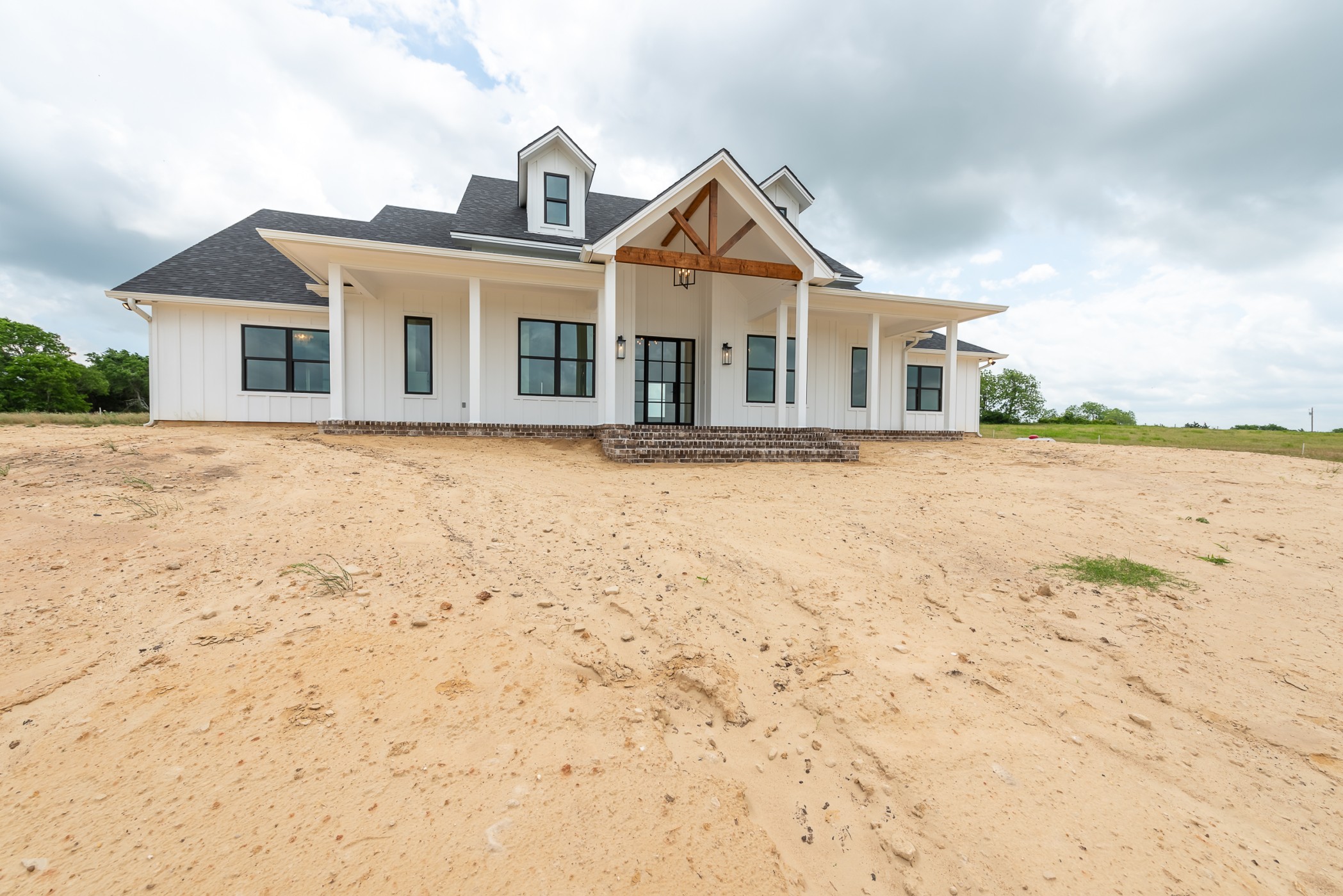 Picture your family in this majestic modern farmhouse, perched on a hill with a stunning view! The primary suite offers a spacious bedroom, a large walk-in shower, an enchanting freestanding tub, and an ample closet. The kitchen, a hub of functionality, boasts a large island, plenty of cabinet storage, and a working pantry for all your small appliances and goods. Relax next to the brick fireplace in the grand living room, flooded with natural light. The roomy secondary bedrooms each have convenient access to well-appointed bathrooms. The versatile bonus space is a practical addition, perfect for an exercise studio, game room, or private office!